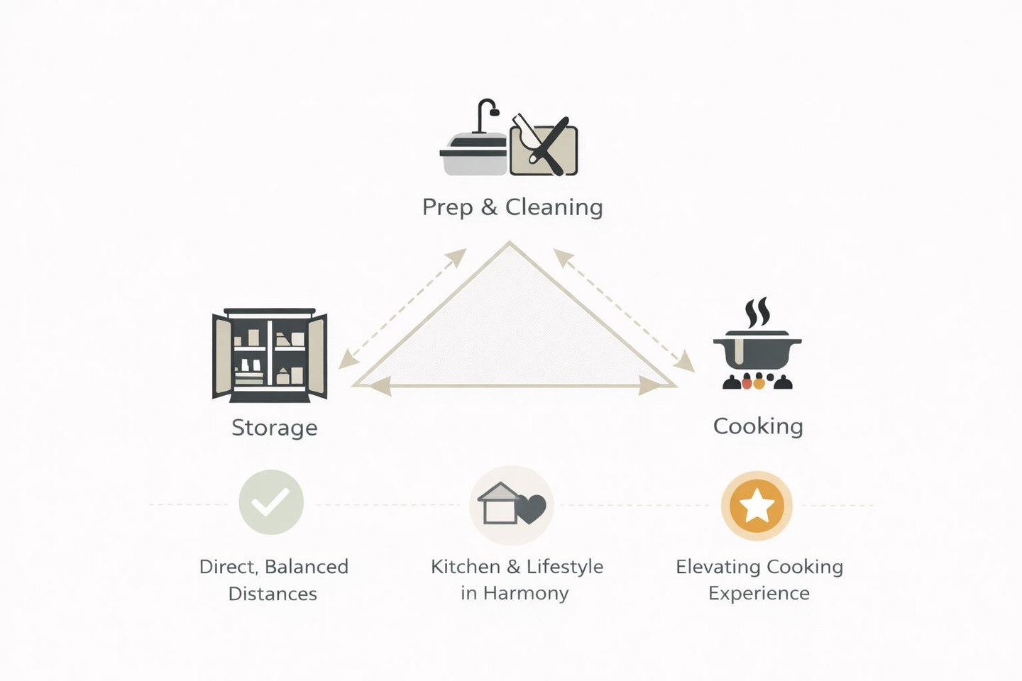 The kitchen should match you and your families lifestyle. A special island for large kitchens, smart planning for small to mid, given more or less to kitchen zones that match your kitchen needs. More worktop space, more movement space, more storage, more sockets, more to where more is needed to match your kitchen needs.