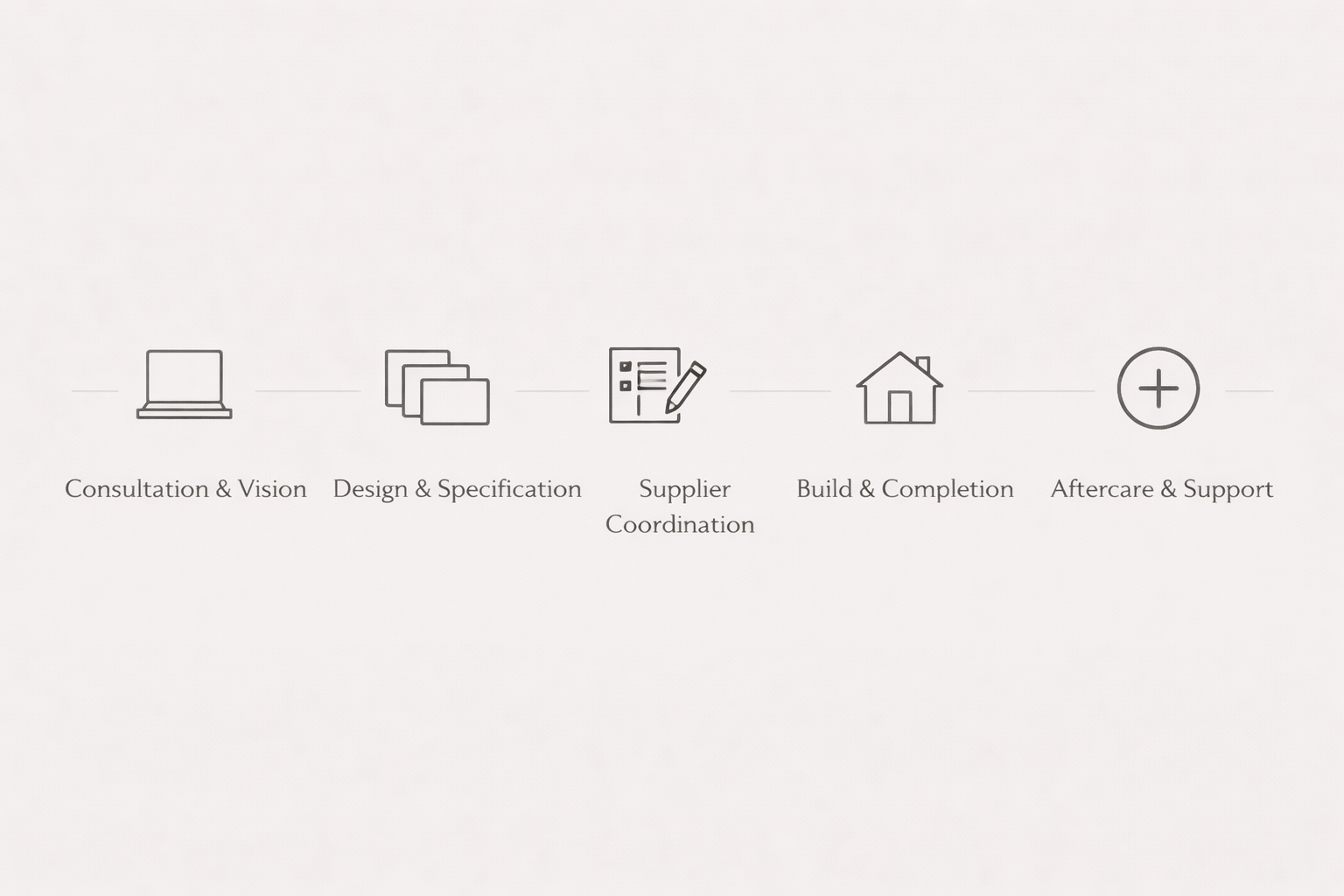 For clients who choose to proceed, we guide the process in collaboration with trusted kitchen suppliers — ensuring the final design, layout and specification align seamlessly with your home, lifestyle, and vision.